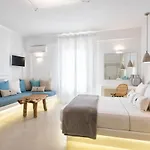 Les chambres sont équipées d'un bureau, ainsi que des fenêtres insonorisées pour le confort des clients. Certaines chambres comprennent également une salle de bain séparée avec une baignoire spa. Les clients peuvent se réveiller en profitant de la vue sur la Mer Égée depuis leur chambre.